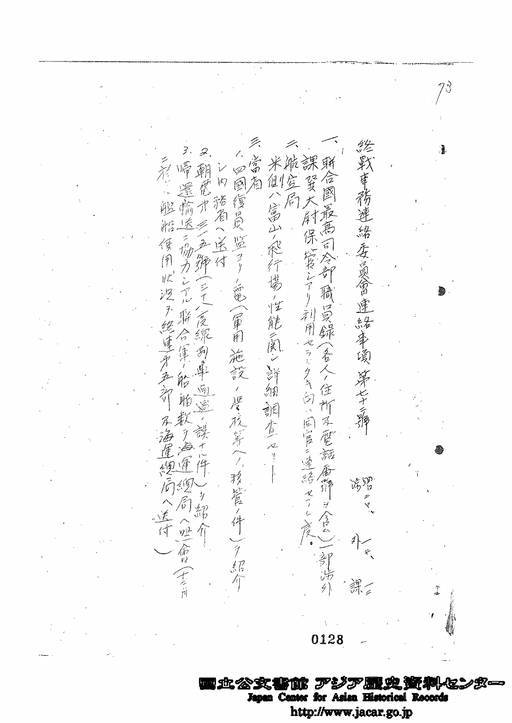 標題:終戦事務連絡委員会連絡事項第72号